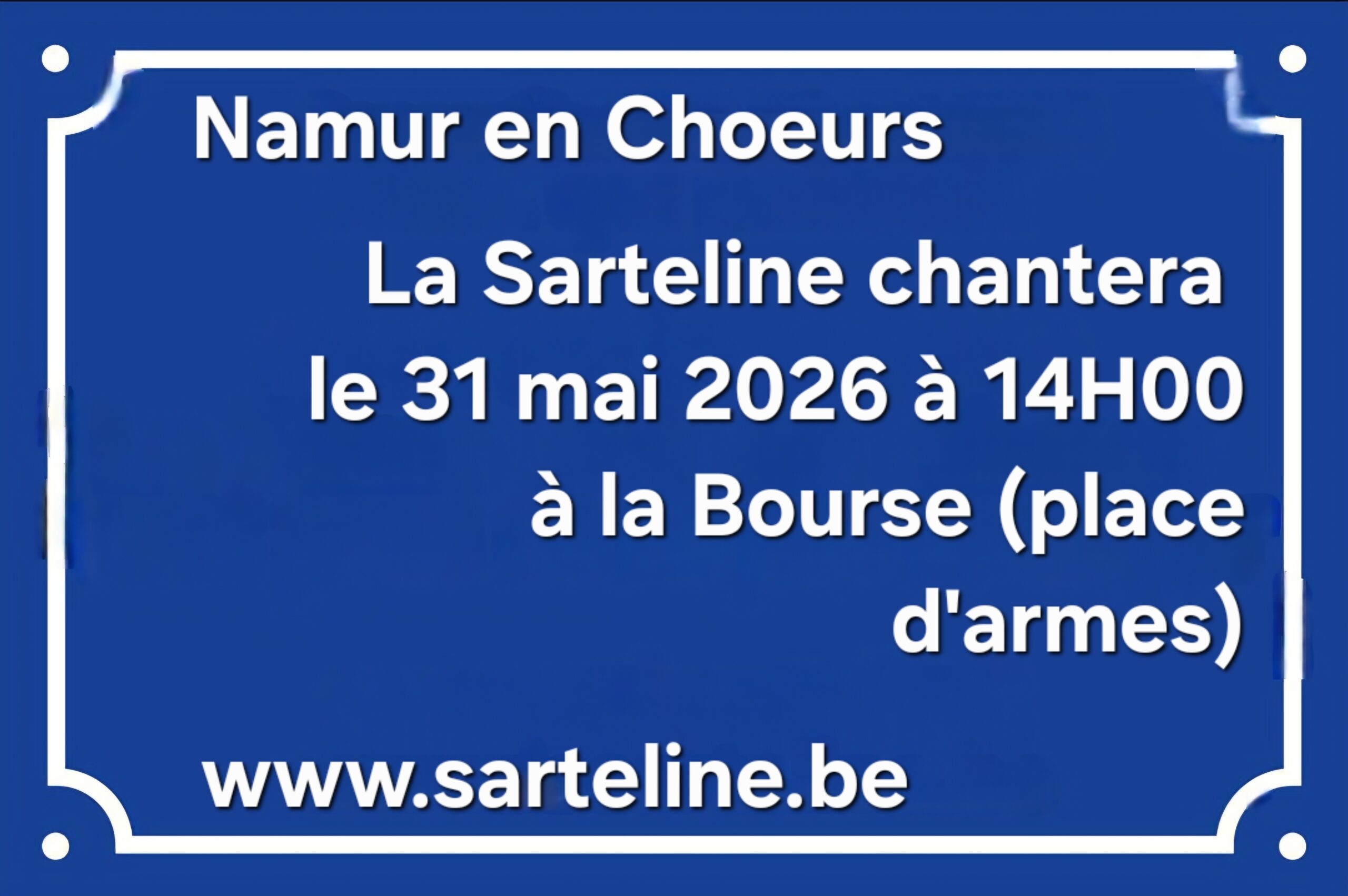 Namur en Choeurs + Add to Google Calendar + iCal / Outlook export 00 days 00 hours 00 minutes 00 seconds Date Mai 31 2026 Time 14 h 00 min - 15 h 00 min Location La Bourse Namur, place d'Armes Category Concerts Organizer www.Sarteline.be Other Organizers Fête des Arts & de la Musique Share this event